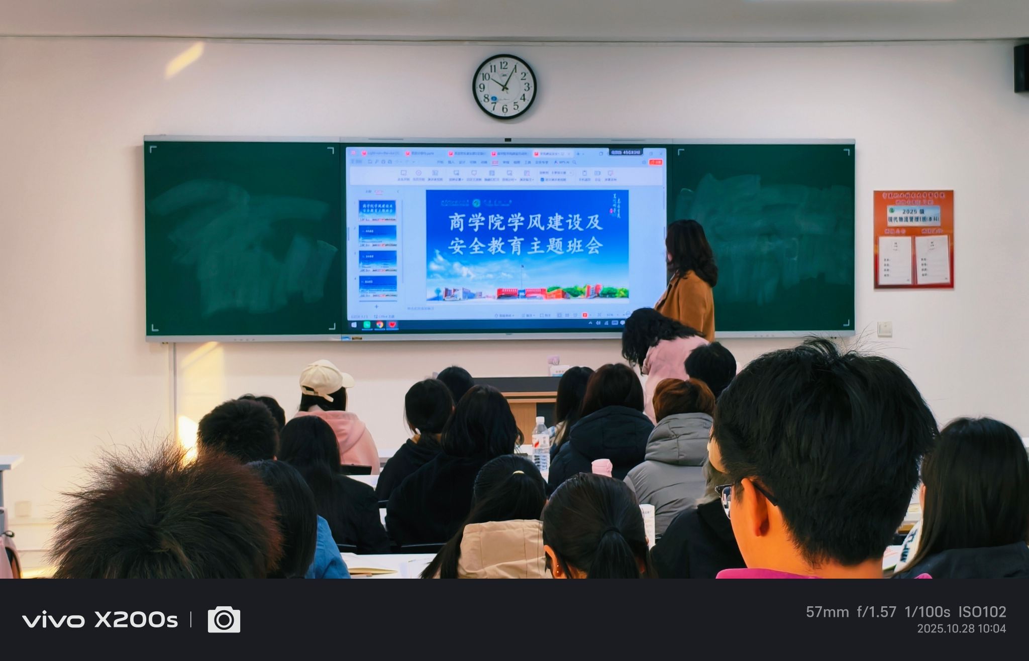 本次班会紧扣“学业精进与安全护航”双主线,内容丰富、形式务实。在学风建设方面,各班辅导员结合《宁夏职业技术大学学生手册》《商学院学生违纪处理暂行规定》讲解课堂纪律、考风考纪、学分管理等制度要求,引导学生树立“自律为基、学习为本”的意识;学生安全教育聚焦学生日常生活场景,围绕国家安全、网络安全、消防安全、电信诈骗、财产安全等重点领域展开。辅导员结合近期高校典型案例,通过宿舍火灾模拟视频,重申《商学院学生宿舍及校园交通安全管理规定》,要求学生严格遵守用电规范,共同维护安全环境。