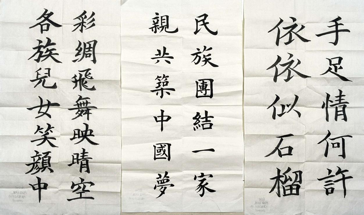 书法组挥毫泼墨,“民族团结一家亲”“同心共筑中国梦”等字迹或苍劲有力、或娟秀雅致,把对民族情谊的珍视融入笔端;绘画组巧思妙想,以水彩、素描、漫画等多种形式,生动描绘各民族共居共学、共建共享的美好场景,展现56个民族像石榴籽一样紧紧相拥的生动画面。