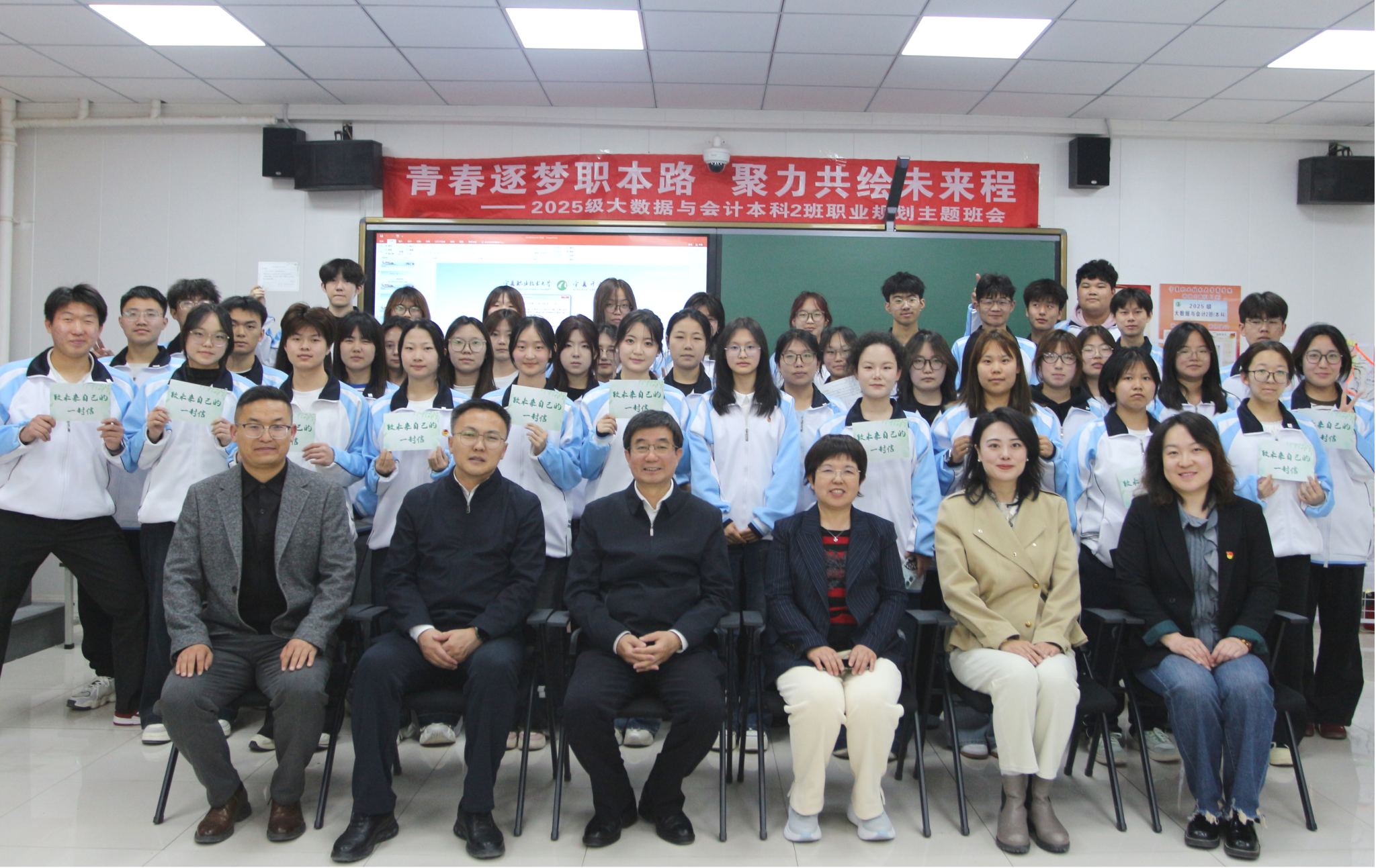 为深入贯彻习近平总书记激励广大青年走技能成才、技能报国之路的重要指示,引导学生立足专业成长,明晰学业与职业发展路径,331日下午,商学院2025级大数据与会计本科2班在竞智楼B309开展青春逐梦职本路,聚力共绘未来程职业规划主题班会。学校党委书记周震出席班会,党政办公室、商学院相关负责人班级全体学生共同参加,班会由辅导员苏涛主持。
